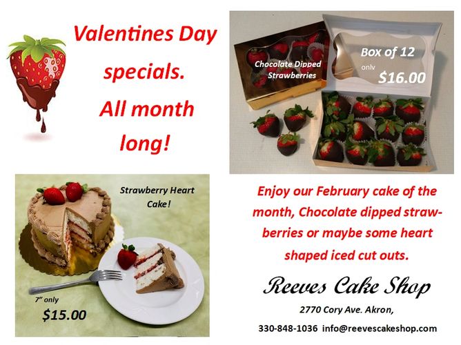 Reeves Cake Shop bakes all desserts to order. We have been doing it this way for 50 years. Our customers enjoy our fresh baked cakes and cookies because they are baked for them. Generally 1-2 day notice is required. For Saturday pick up we need the order placed by closing on Thursday. For more elaborate designs a minimum of 1 week notice is required. Questions and orders can be placed by stopping in our bakery, calling or emailing. We are closed on Sundays and Mondays.